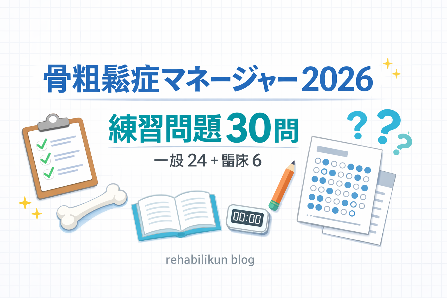 骨粗鬆症マネージャー 2026|オリジナル練習問題 30 問(一般 24+臨床 6 )