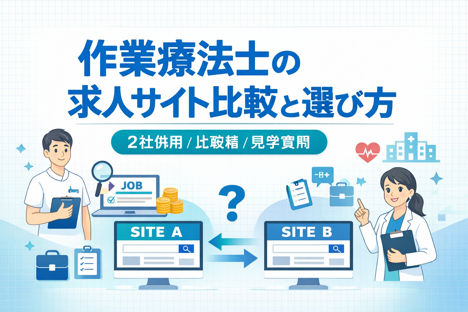 この記事で答えるのは、「 OT が求人サイトをどう選ぶか」「比較をどう進めるか」「見学で何を確認するか」の 3 点です。各サービスの評判や細かい使い分けは兄弟記事へ譲り、本ページでは“登録前に何を決めるか”に絞って整理します。