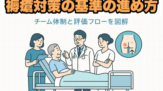「褥瘡対策の基準」を現場目線で整理。入院基本料の施設基準としての位置づけから、チーム体制、危険因子評価、診療計画書、体圧分散マットレスまでをフローチャートで解説します。