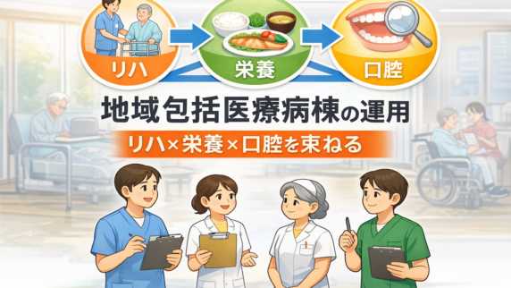地域包括医療病棟は、リハ・栄養・口腔を別々に動かすと詰まります。会議体と記録先を固定し、最小セットと 5 分フローで回す手順を整理。