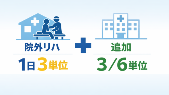 院外リハの上限単位数は、1日3単位が原則のまま、必要時のみ入院中合計3 / 6単位の追加枠で整理します。往復時間、安全配慮、記録の型、PDFまで実務向けに整理。