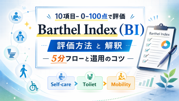 FIM は「している ADL 」の介助量を 1〜7 点で共通言語化する尺度です。18 項目と 5 / 6 の線引き、記録シート(PDF)まで早見で整理。