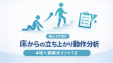 - 移動/ ADL 高値:歩行耐容能・すくみ足・転倒不安への介入(運動療法、生活環境調整、見守り設計)。