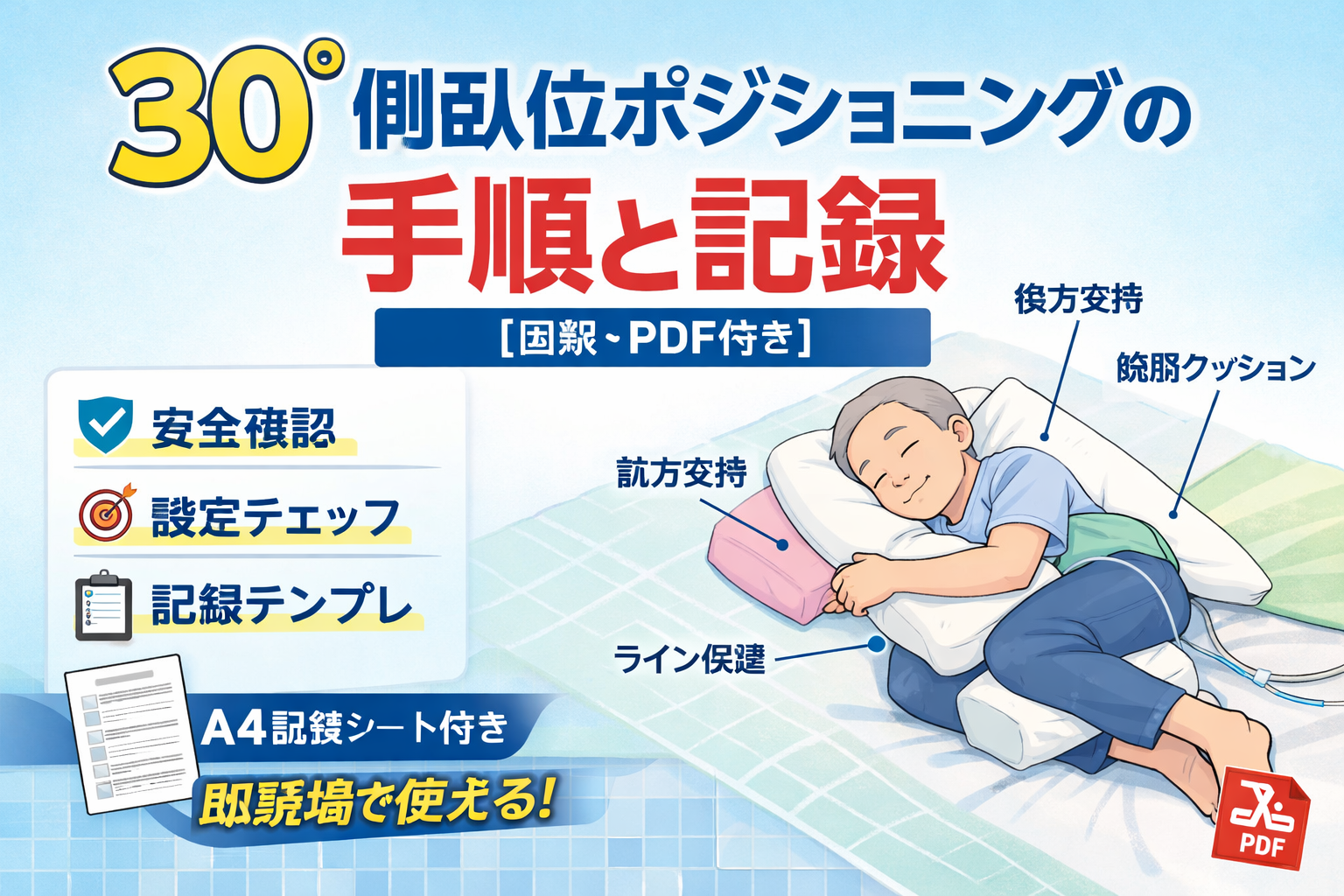 30° 側臥位ポジショニングの手順と記録【図解・PDF付き】