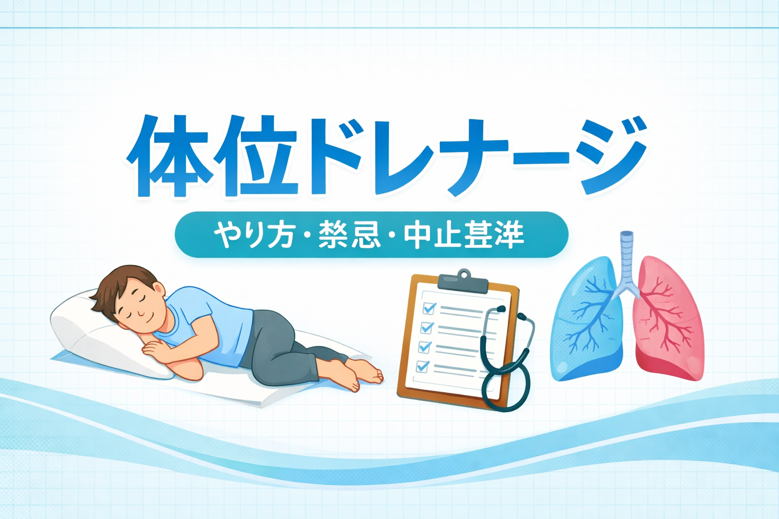 体位ドレナージは侵襲が低い一方、頭低位や強い体位変換で、呼吸循環や逆流リスクが上がることがあります。禁忌・要注意は「循環」「酸素化」「誤嚥・逆流」「頭部・整形外科リスク」を軸に整理すると、判断がぶれにくいです。