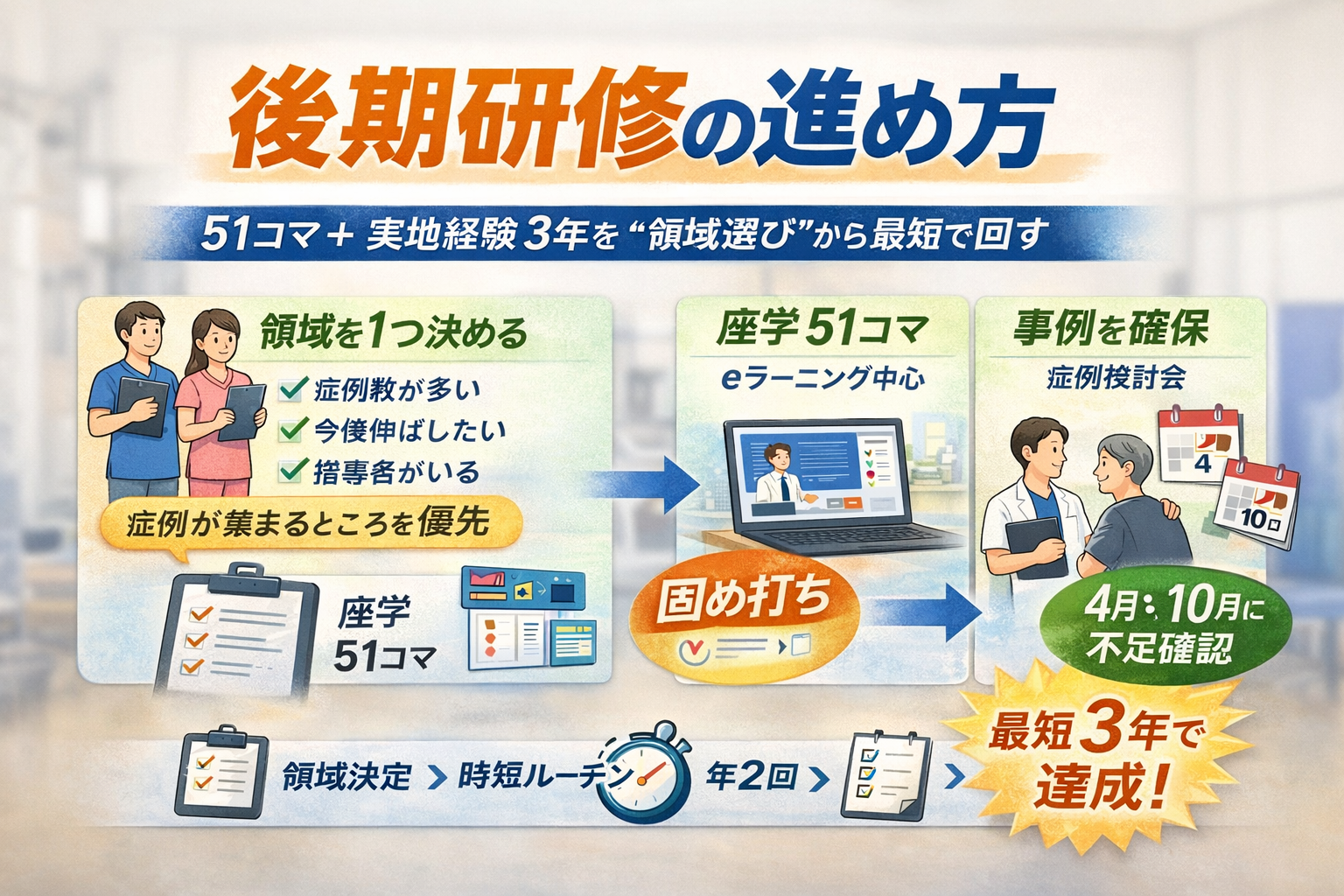 後期研修の進め方|51 コマ+実地経験 3 年を “ 領域選び ” から最短で回す
