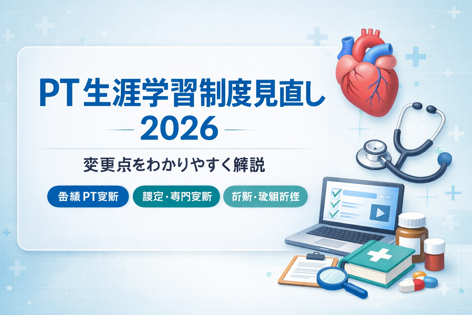 PT 生涯学習制度の見直しは、変更点自体よりも「いつから何が適用されるか」が分かりにくいのが詰まりどころです。今回の告知は、2026・2027 年の段階改定と、2029 年の抜本改定予定を前提にした内容です。まずは対象(前期/後期、登録更新、認定/専門更新)を分けて読むと、実務判断が一気に楽になります。