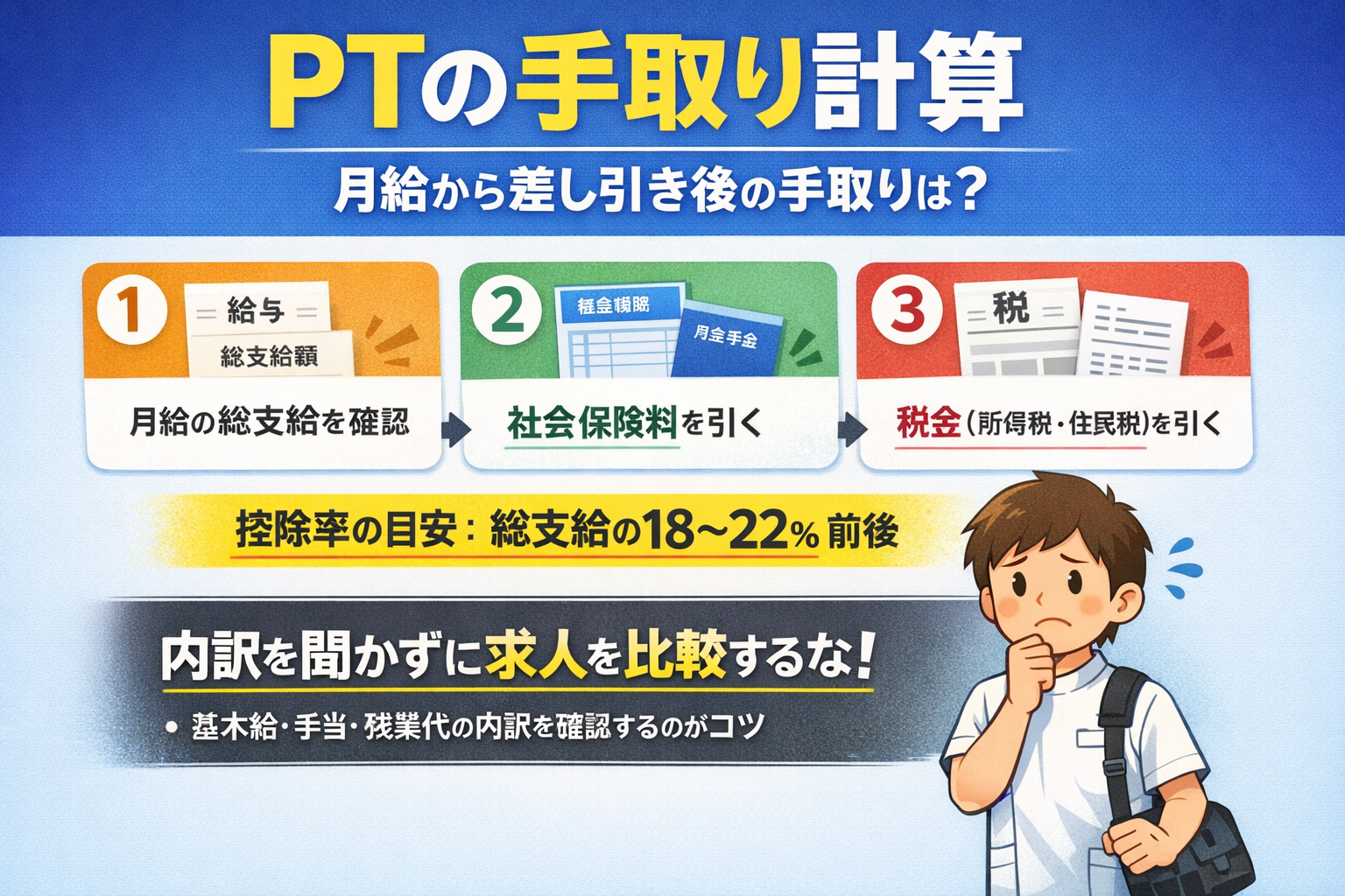 PT の手取り計算|月給(総支給)から「差し引き」を最短で見抜く