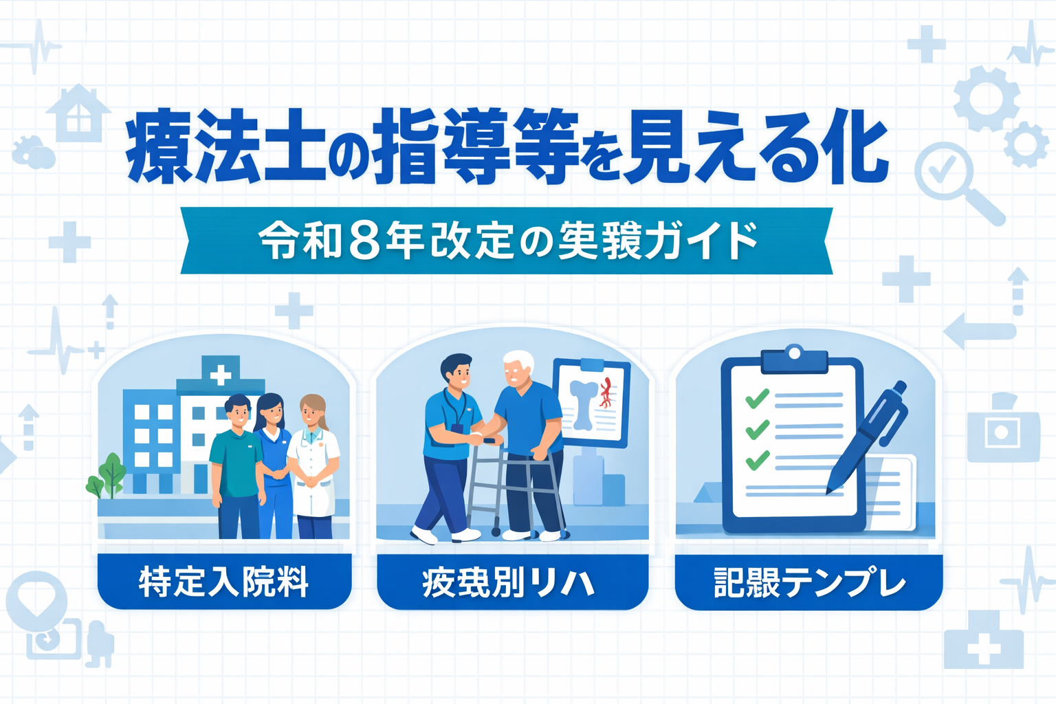 本記事では、制度文言の解釈で終わらせず、① どんな指導が対象になり得るか、② 疾患別リハ/特定入院料での運用の分け方、③ 監査・院内共有に耐える記録テンプレまで、現場の「迷い」を減らす形でまとめます。