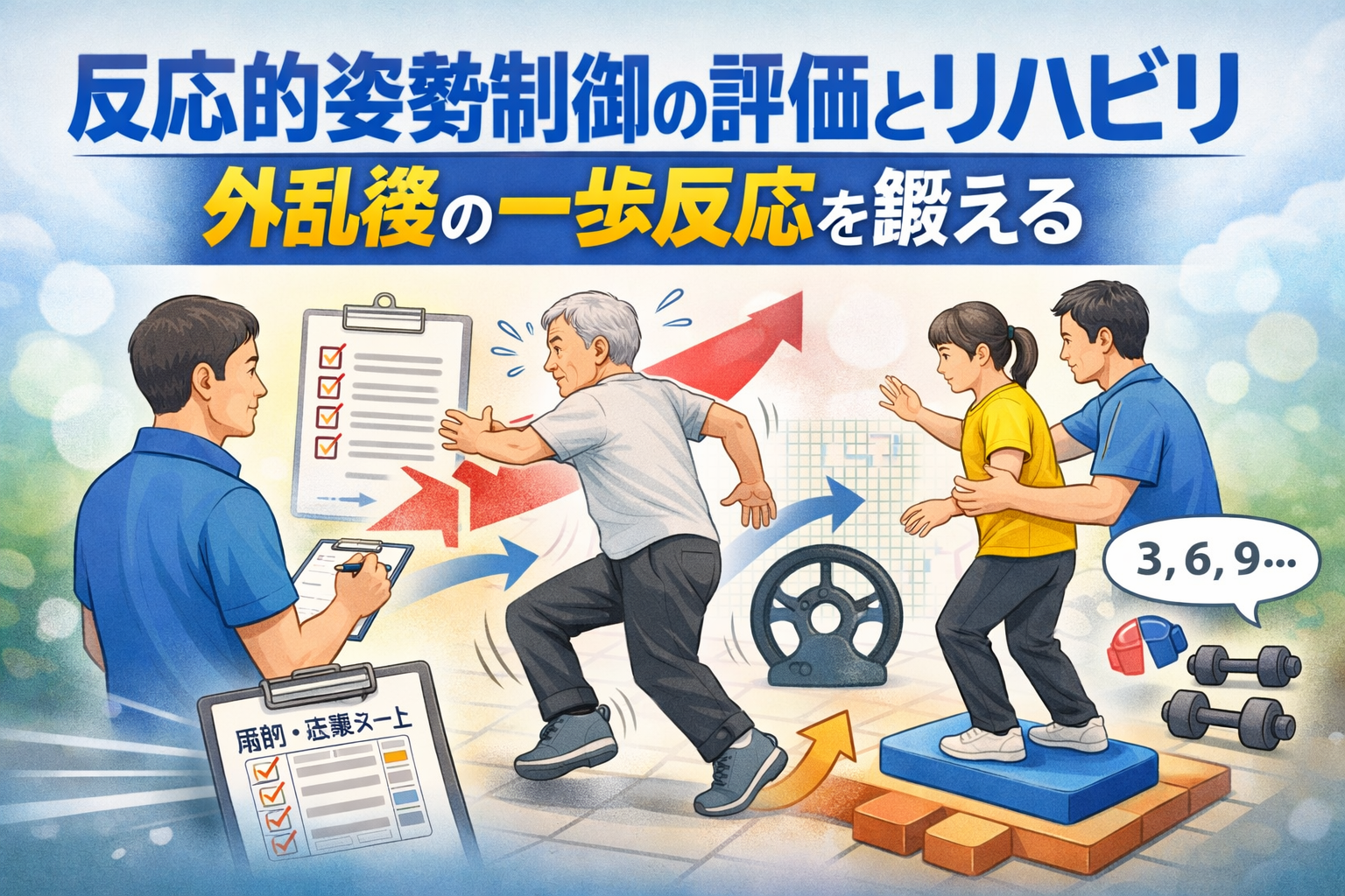 反応的姿勢制御は、良くも悪くも「その場のノリ」で負荷が変わりやすい領域です。評価と安全管理、段階付け、記録の 3 点を固定すると、チームで再現できる介入になります。