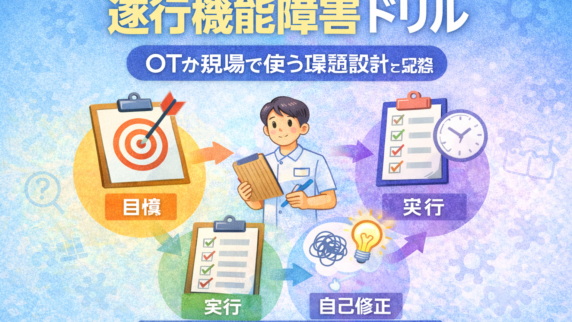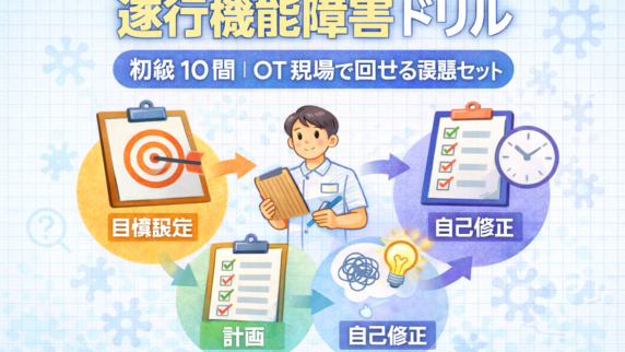 評価 遂行機能障害ドリル|OTの課題設計と記録 遂行機能障害に対する OT ドリルを、目標設定・計画・実行・自己修正の流れで解説。課題例、難易度調整、記録テンプレを実務向けに整理します。 2026.02.18 評価