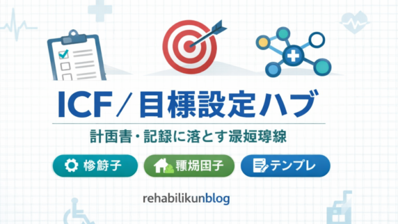 制度・実務 ICF と目標設定の書き方ハブ|計画書・記録に落とす最短導線 ICF を「書ける」ようにするための導線ハブ。書き方の実務、修飾子、環境因子、目標設定、計画書への落とし込みまでを読む順で整理します。 2026.01.15 制度・実務