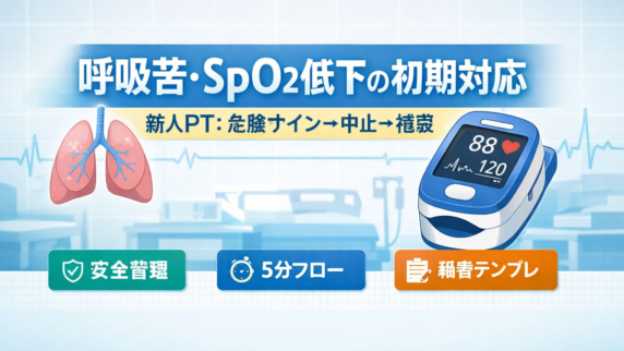 臨床手技・プロトコル 呼吸苦・ SpO2 低下の初期対応|新人 PT 新人 PT 向けに、呼吸苦・ SpO2 低下時の初期対応を「順番」で統一。危険サイン→中止→相談→軽負荷の判断、報告と記録の型までまとめます。 2026.02.18 臨床手技・プロトコル