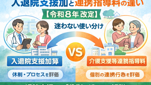 制度・実務 回復期リハで迷う入退院支援加算と連携指導料の使い分け 入退院支援加算と介護支援等連携指導料の違いを、対象患者・算定タイミング・必要記録で比較。回復期リハの実務で迷わない使い分けを解説します。 2026.02.17 制度・実務