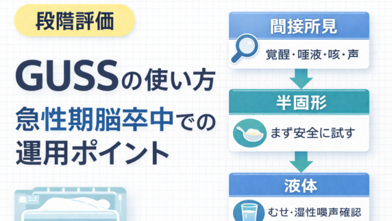 GUSS の考え方、段階評価、急性期脳卒中での回し方を整理します。経口開始の可否や次の精査につなげる視点が分かります。