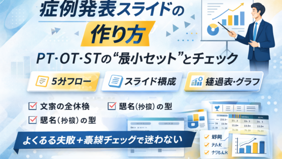 CAREガイドラインをPT・OT・ST向けに実務化。時間軸・介入量・同意の抜けを防ぐ 7 ステップと提出前チェックで、症例報告を短く通る形に整えます。