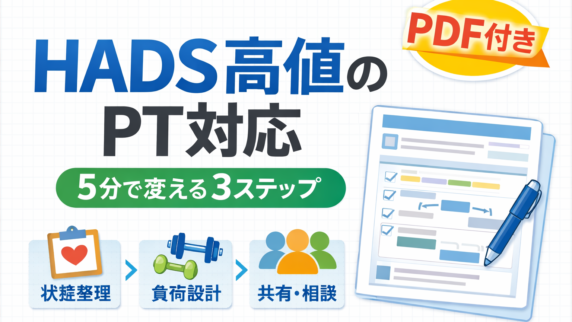 評価 HADS 高値で進まないときの PT 対応|図解・ 5 分フロー・記録シート HADS 高値で離床や運動が進まない日に、 PT が変えるべき見立て・負荷設計・共有方法を整理。図解、 5 分フロー、 A4 記録シート PDF つきで、現場にそのまま落とし込めます。 2026.04.12 評価