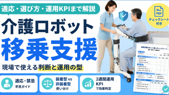 臨床手技・プロトコル 介護ロボットの移乗支援|適応・選び方・運用 KPI 移乗支援ロボットを、どの利用者・場面に、どの型で、どう回すかを整理。適応・禁忌、装着 / 非装着の違い、2 週間の運用 KPI と記録シートまで分かります。 2026.04.11 臨床手技・プロトコル