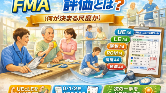 FMA 評価のやり方・採点・解釈を実務向けに整理。UE / LE の絞り方、0 / 1 / 2 採点、重症度の見方、 PDF 記録シートまで 1 本で確認できます。