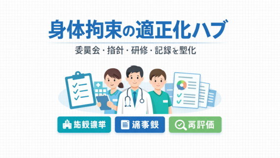 身体拘束の適正化を委員会・指針・研修・記録で標準化。施設基準の要点、議事録の型、解除条件と再評価の回し方、関連記事へ最短導線をまとめます。