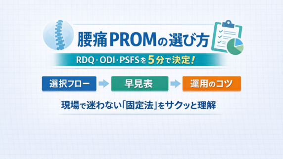 腰痛の生活障害をみる PROM(RDQ・ODI)を、目的と場面で 5 分で選ぶ。記録の型、運用の詰まりどころ、再評価のコツまで整理。
