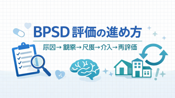 評価 BPSD 評価の進め方:原因→観察→再評価 BPSD はまず せん妄・疼痛・感染など原因を外し、ABC(先行事象‐行動‐結果)で観察をそろえて、NPI/NPI-NH で変化を追います。介入→再評価までの 5 ステップを PT 視点で整理します。 2025.12.24 評価
