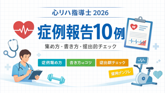 キャリア 心臓リハビリテーション指導士 2026|症例報告 10 例の集め方・書き方 心リハ指導士の出願で必須になる症例報告 10 例を、集め方→下書き→提出前チェックまで運用の型で整理。差し戻しを減らす観察ポイントもまとめます。 2026.02.27 キャリア
