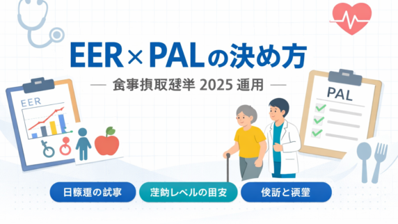 食事摂取基準 2025 の EER 表と PAL を使い、回復期〜生活期の「まずの目標量」を決める手順を整理。PAL の目安、1〜2 週での検証、よくある詰まりどころまで一気通貫で解説します。