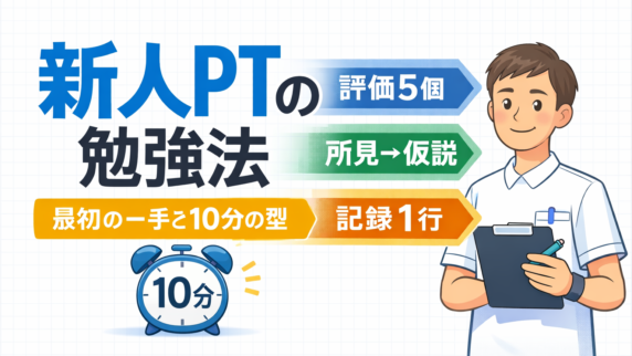 新人 PT が最初に詰まりやすい記録・報連相を整理。SOAP の基本、申し送りで伝えること、相談のタイミング、記録が遅くなる原因と対策をわかりやすく解説します。