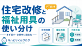 | 主訴(目的) | 食事/移乗/駆動/疼痛/皮膚など | 1 つに絞って書く。複数ある場合は優先順位を残す | 「食事が疲れる」など、同じ課題で再評価する |